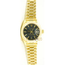 Ladies Two Tone Black Dial Fluted Bezel Rolex Datejust (546)